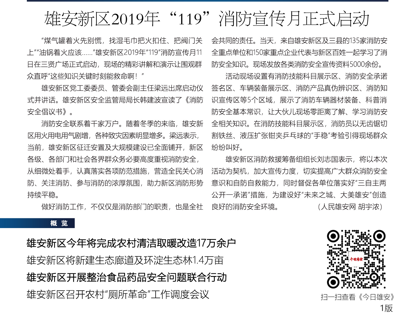 “煤气罐着火先别慌,找湿毛巾把火扣住、把阀门关上”“油锅着火应该......”雄安新区2019年“119”消防宣传月11日在三贤广场正式启动。