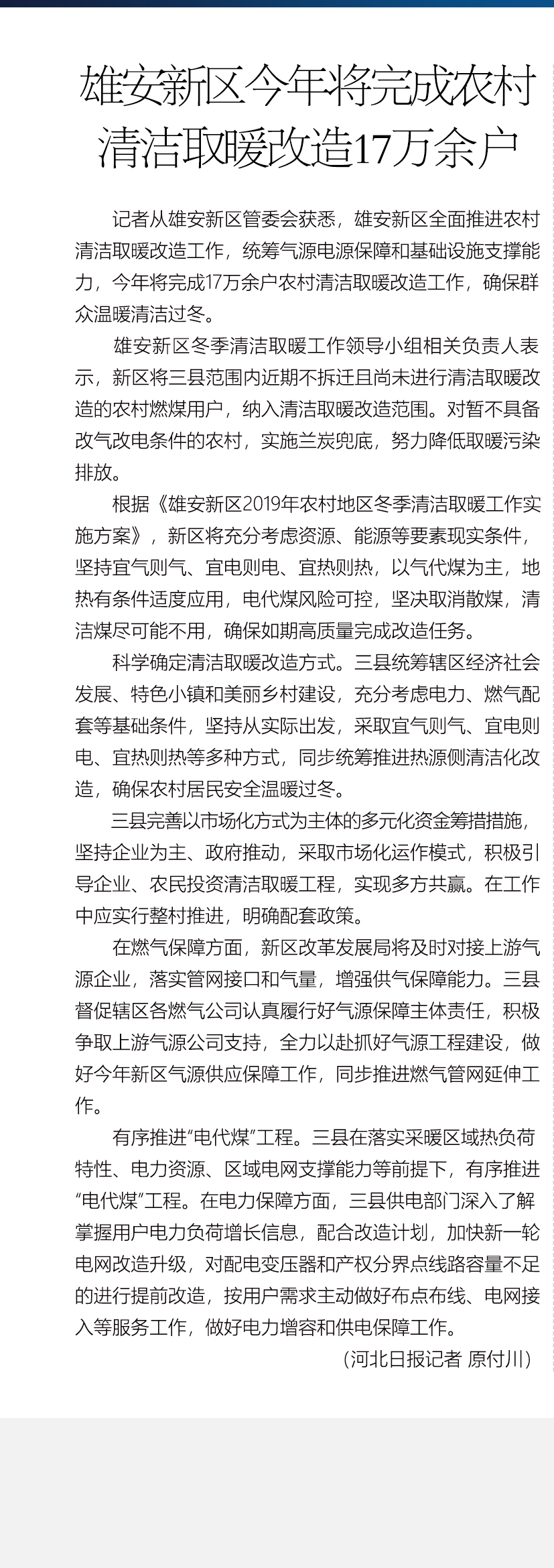 雄安新区今年将完成农村清洁取暖改造17万余户