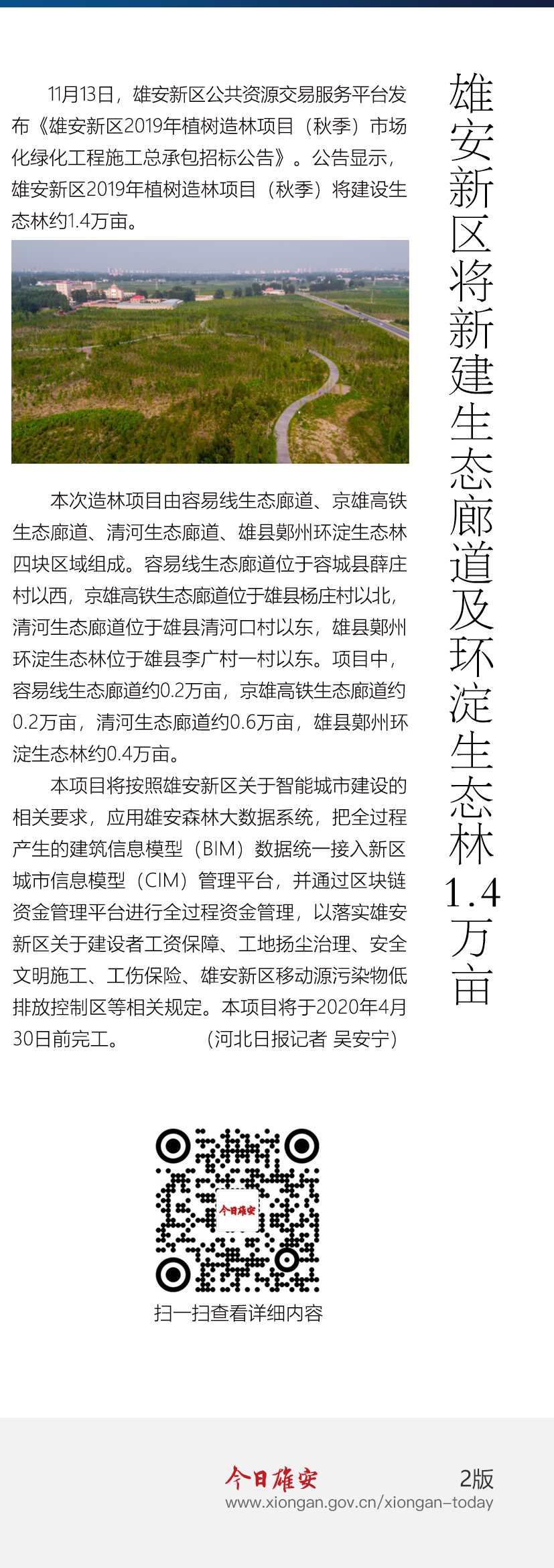 11月13日,雄安新区公共资源交易服务平台发布《雄安新区2019年植树造林项目(秋季)市场化绿化工程施工总承包招标公告》。