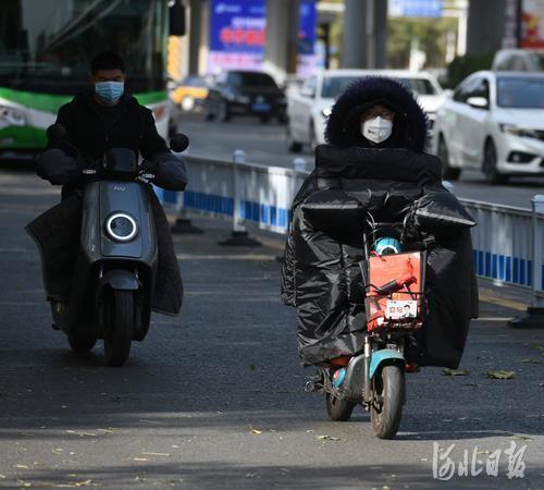 11月13日,石家庄市民在风中骑行。当日,河北省迎来大风降温天气。记者史晟全 摄