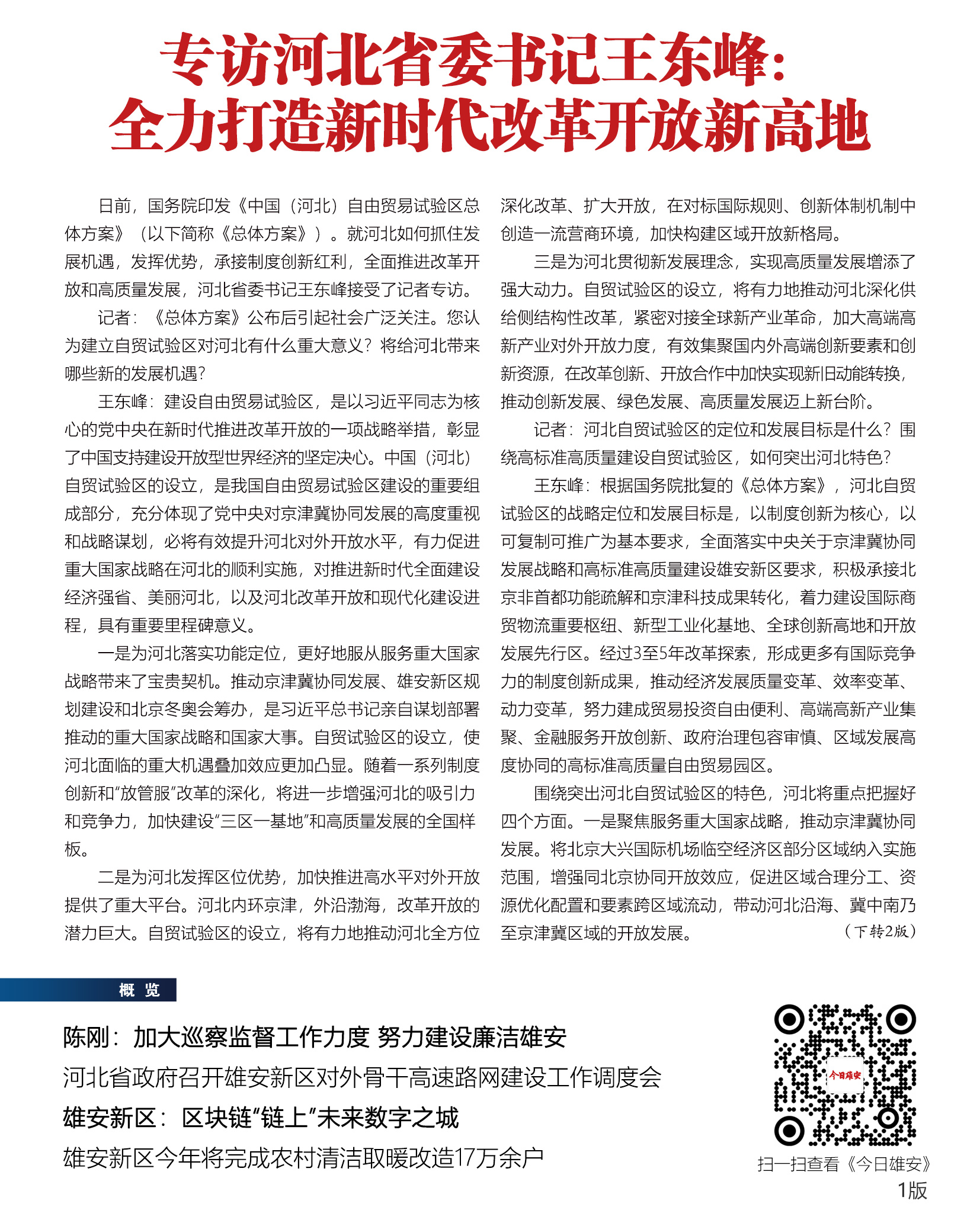就河北如何抓住发展机遇,发挥优势,承接制度创新红利,全面推进改革开放和高质量发展,河北省委书记王东峰接受了记者专访。
