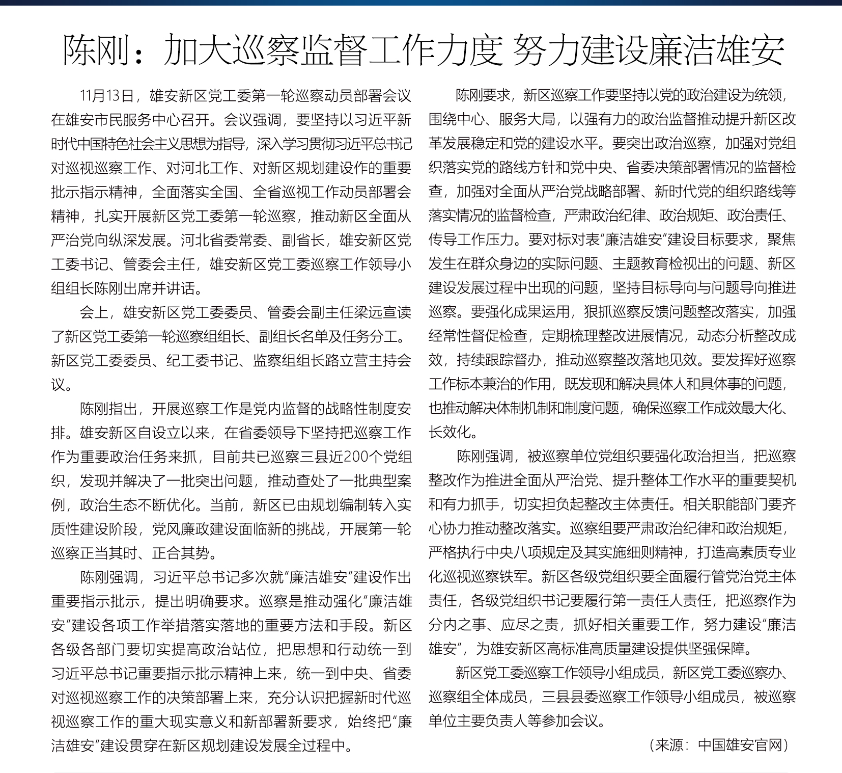 11月18日,河北省委书记、省人大常委会主任王东峰到雄安新区调研检查。