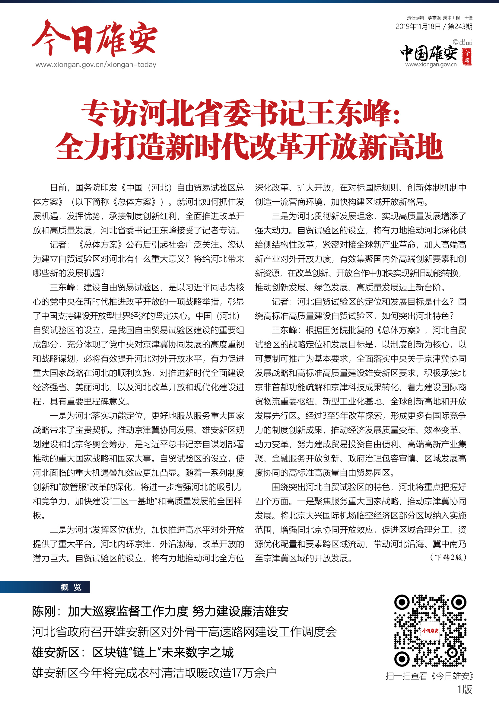 专访河北省委书记王东峰:全力打造新时代改革开放新高地