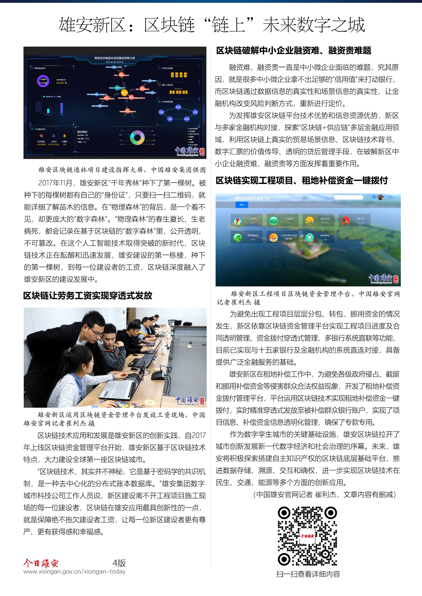 区块链技术近年来走进大众视野悄然延伸到众多领域,逐渐显现出“区块链+”的巨大潜能。在雄安新区,区块链已经应用到工程项目资金管理等方面。