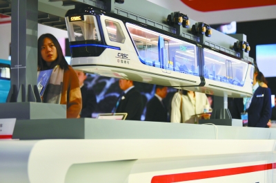 展会上一款悬挂式的列车车型吸引了观众的目光。记者和冠欣 摄