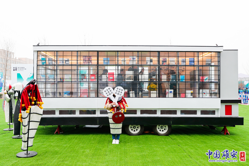 容城市民体育运动中心室外展区,停放着由德国建筑师设计的包豪斯大篷车。中国雄安官网记者毛鹤然 摄