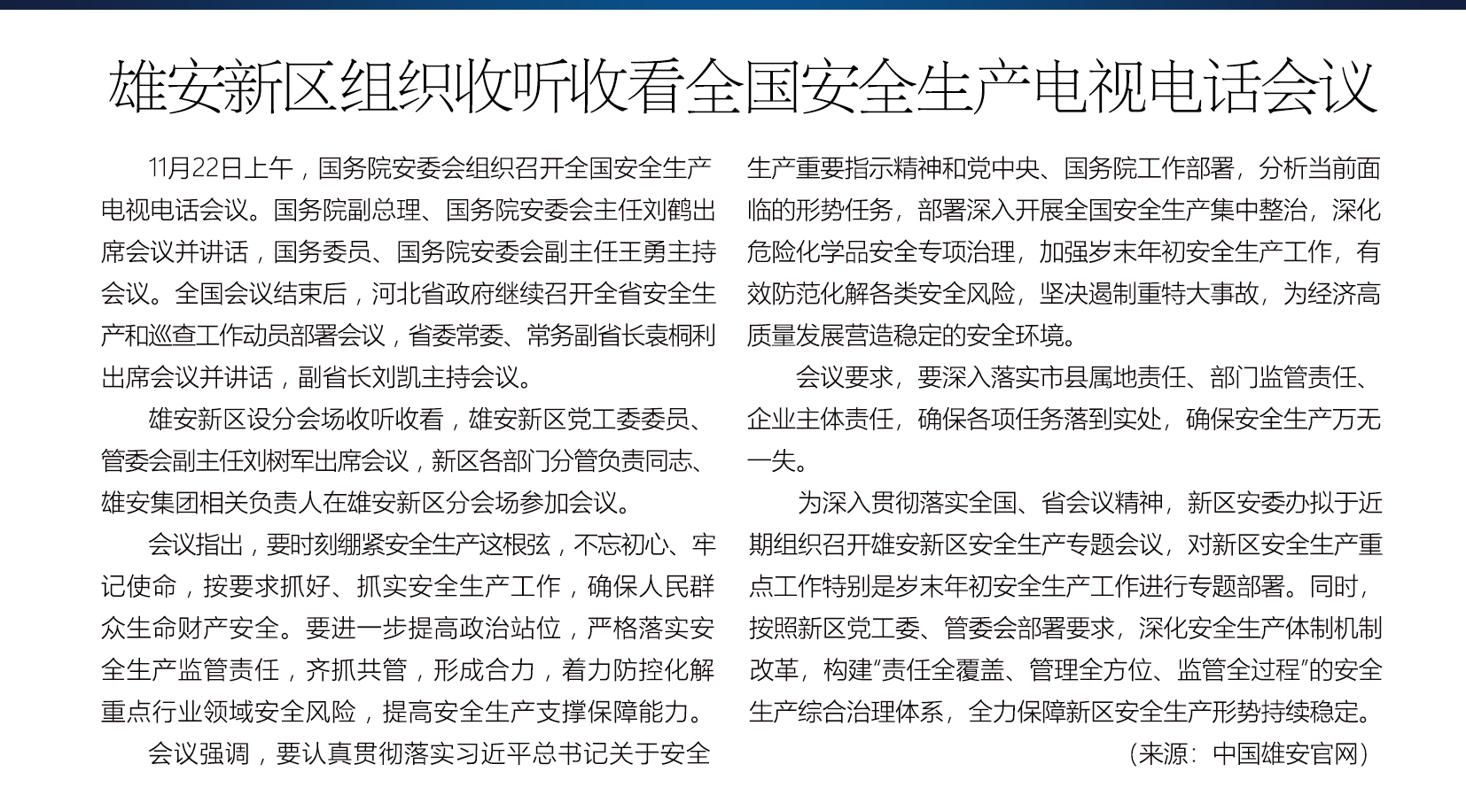 雄安新区组织收听收看全国安全生产电视电话会议