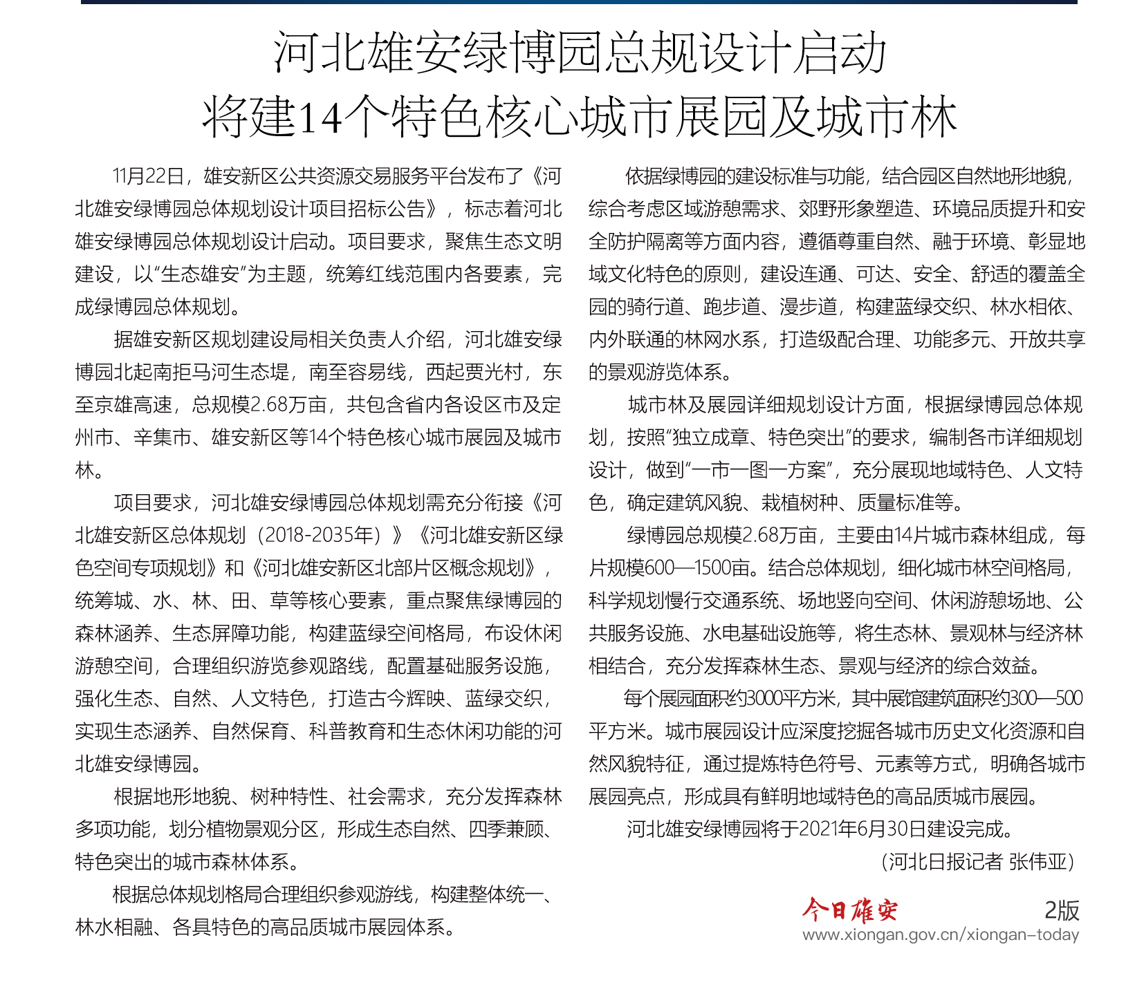 河北雄安绿博园总规设计启动 将建14个特色核心城市展园及城市林