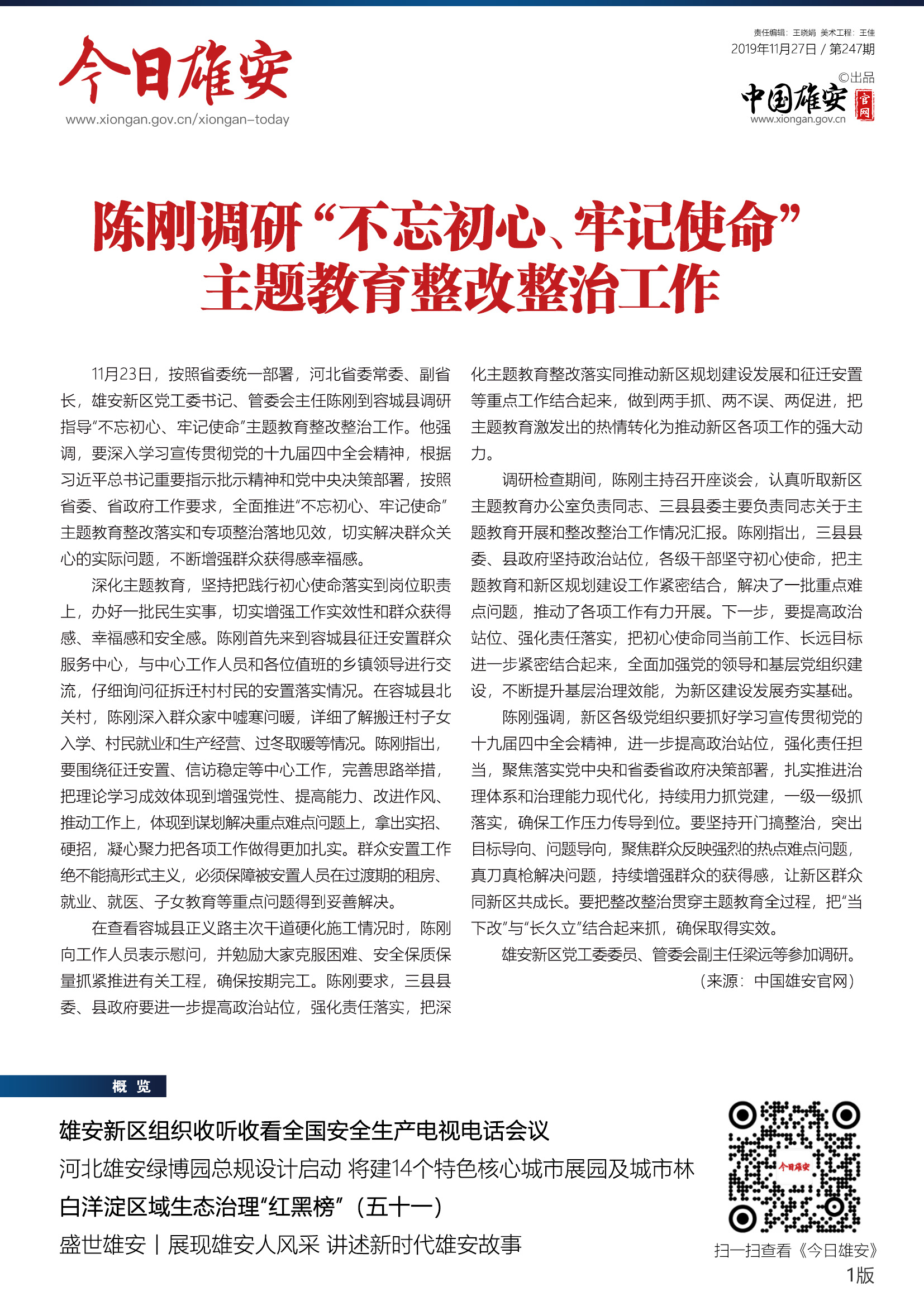 《今日雄安》 2019年11月27日 第247期