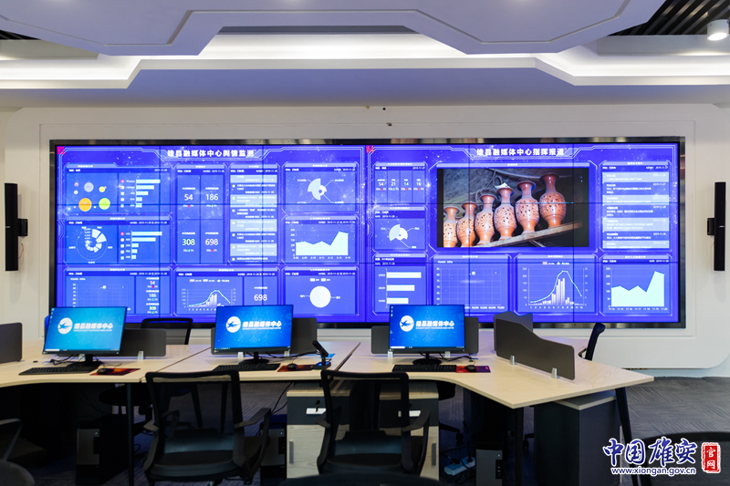 雄县融媒体中心指挥中心大屏上,新闻热点、传播效果、内容生产一目了然。中国雄安官网记者刘东尧 摄