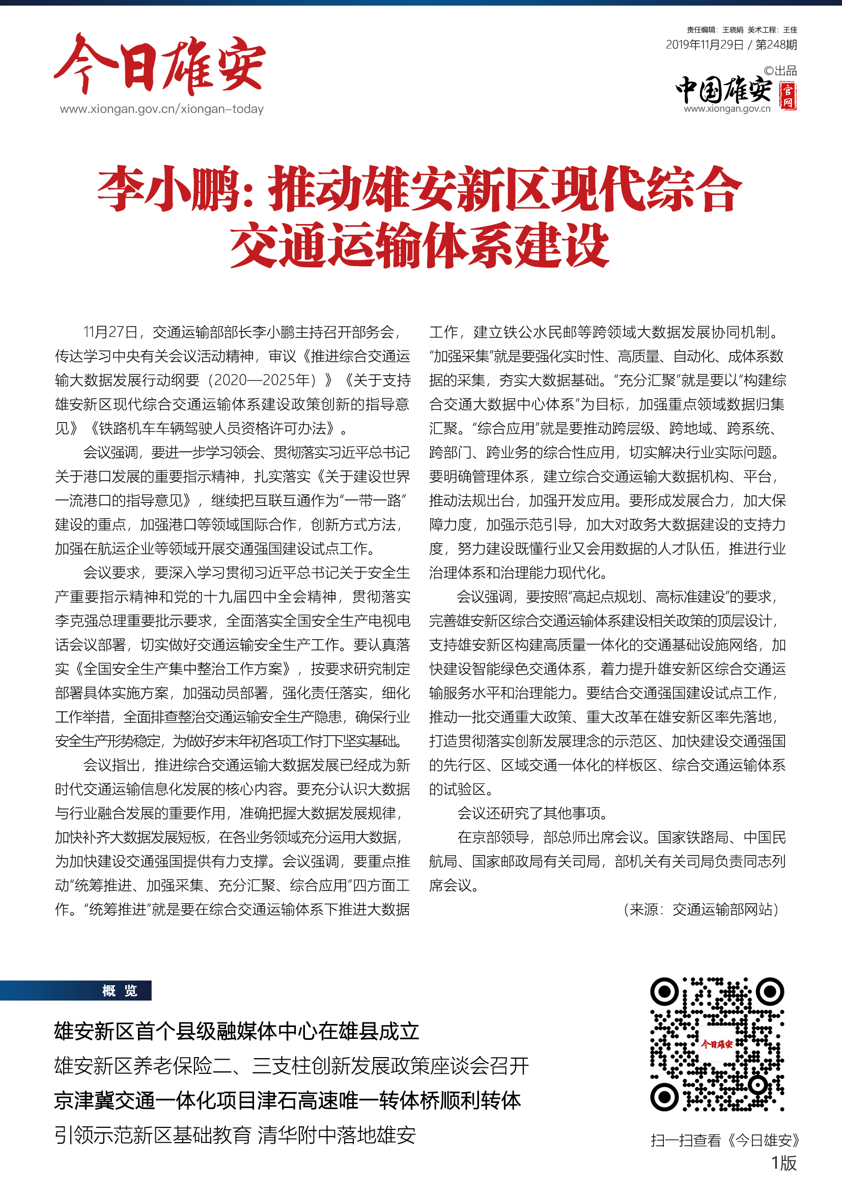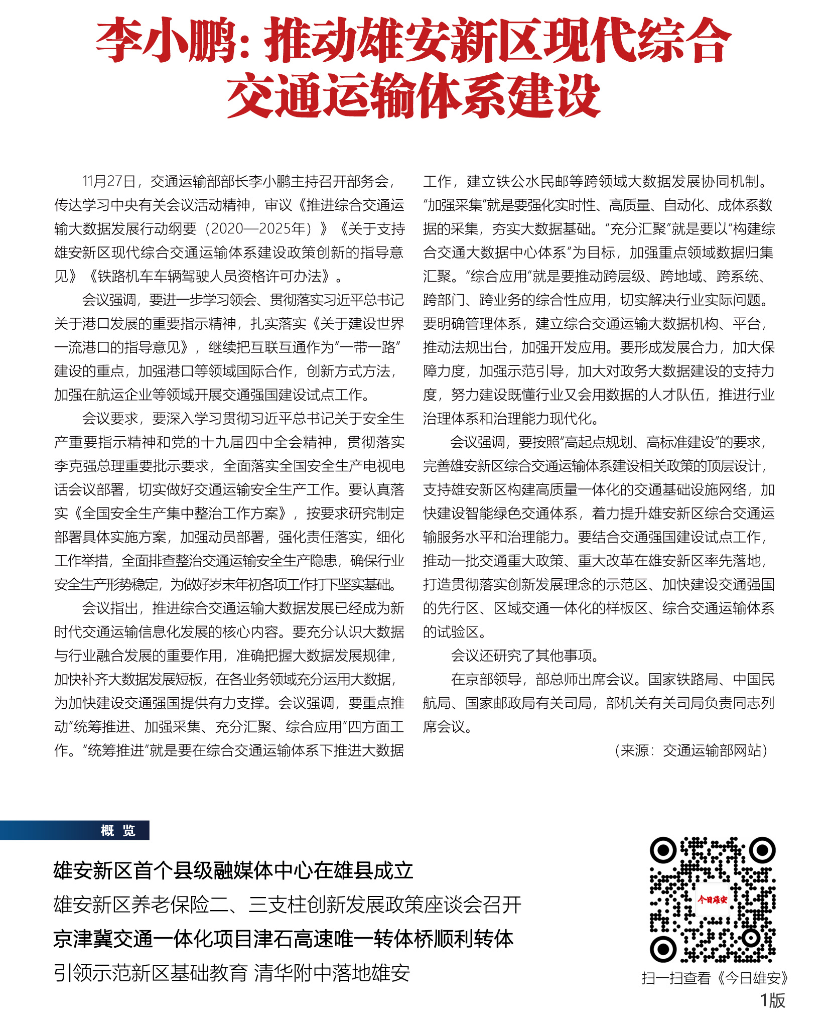 李小鹏:扎实推进综合交通运输大数据发展 推动雄安新区现代综合交通运输体系建设