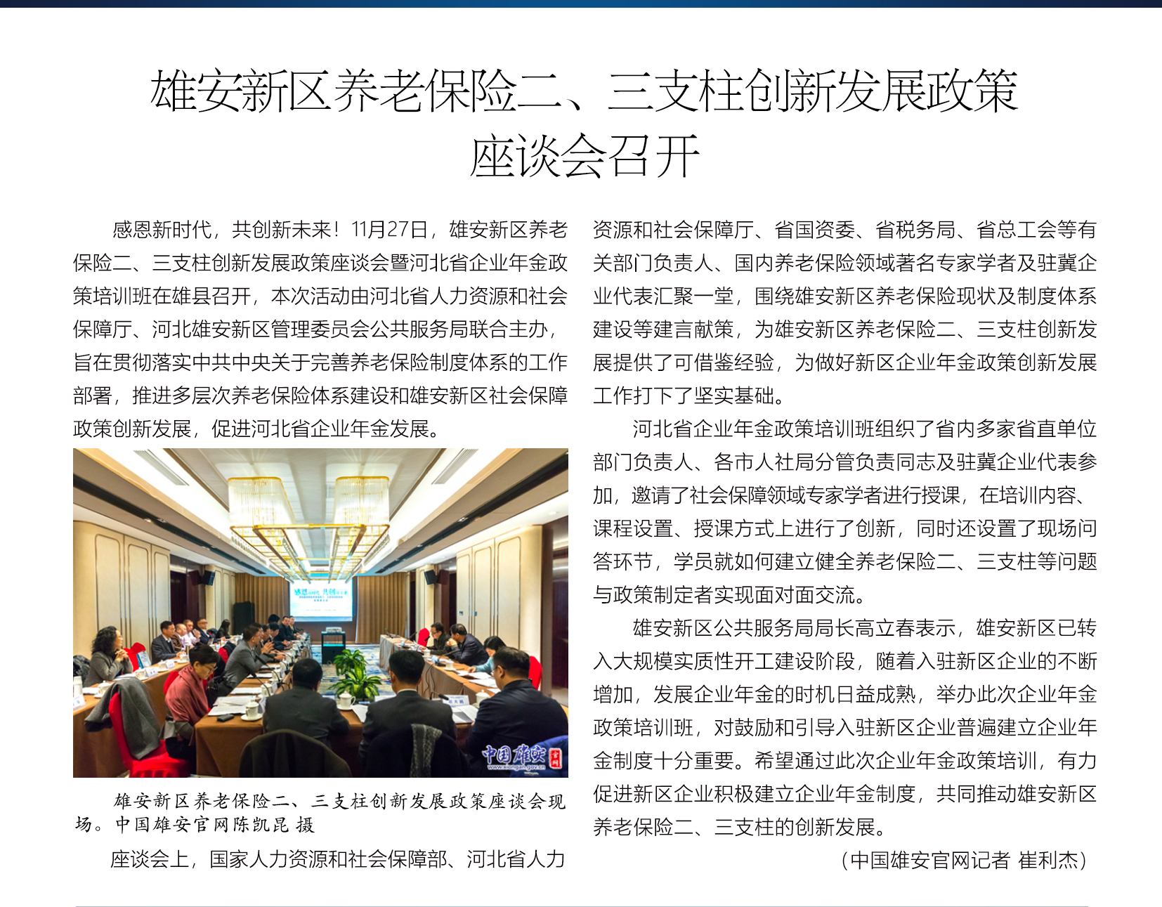 雄安新区养老保险二、三支柱创新发展政策座谈会暨河北省企业年金政策培训班召开