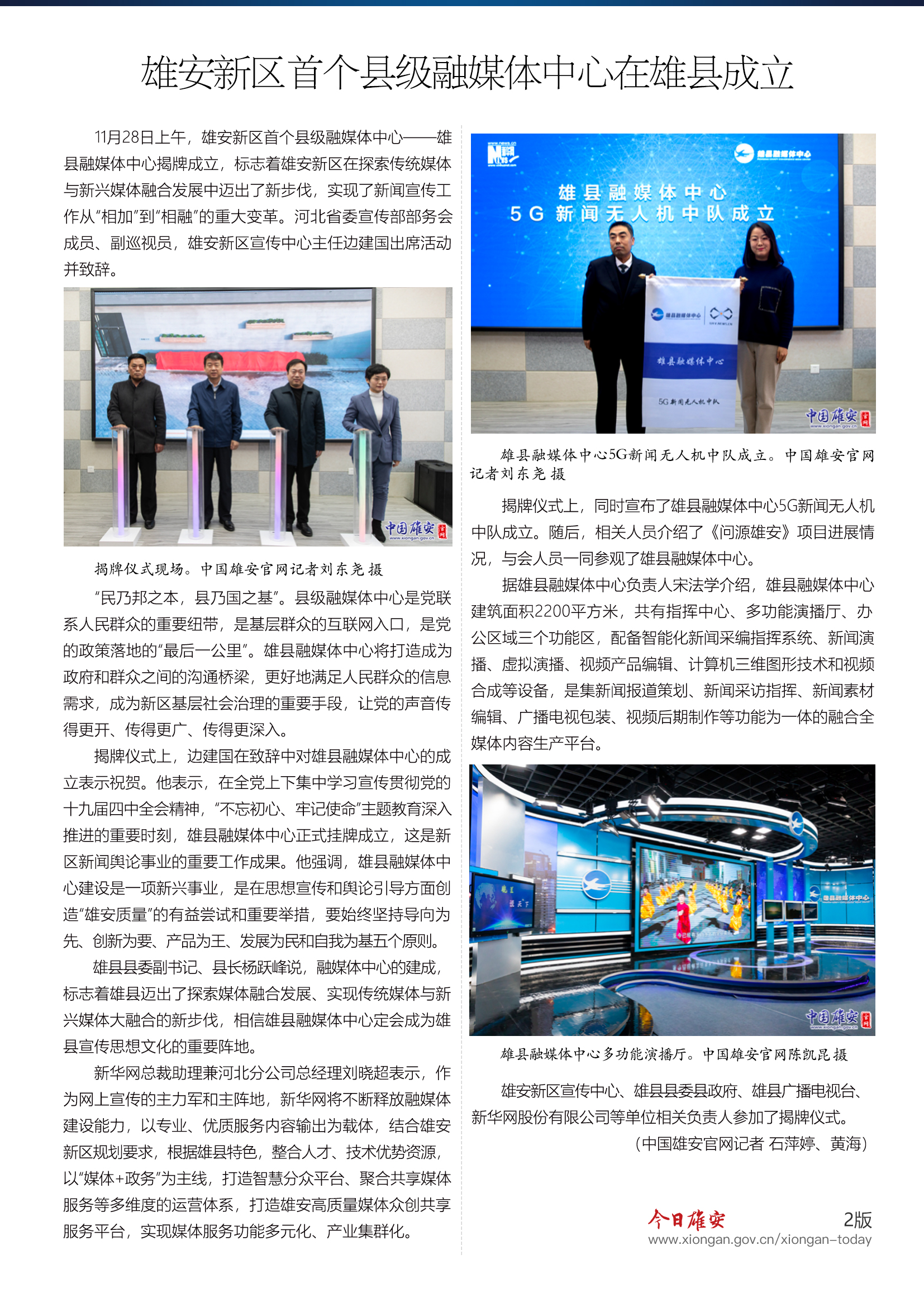 11月28日上午,雄安新区首个县级融媒体中心——雄县融媒体中心正式亮相。