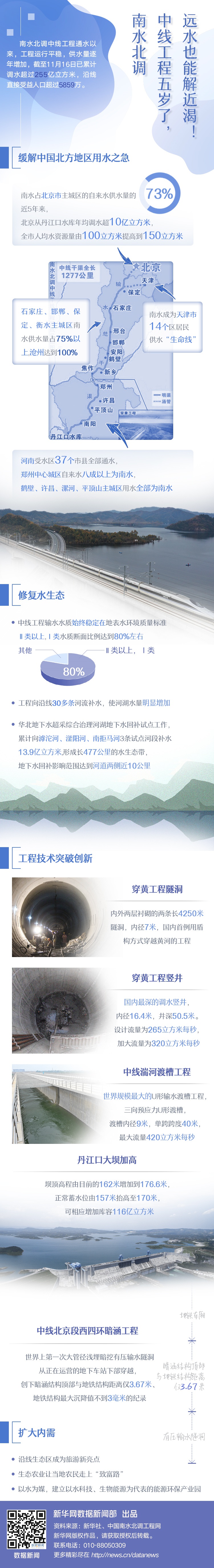 南水北调中线工程通水以来,工程运行平稳,供水量逐年增加,截至11月16日已累计调水超过255亿立方米,沿线直接受益人口超过5859万。