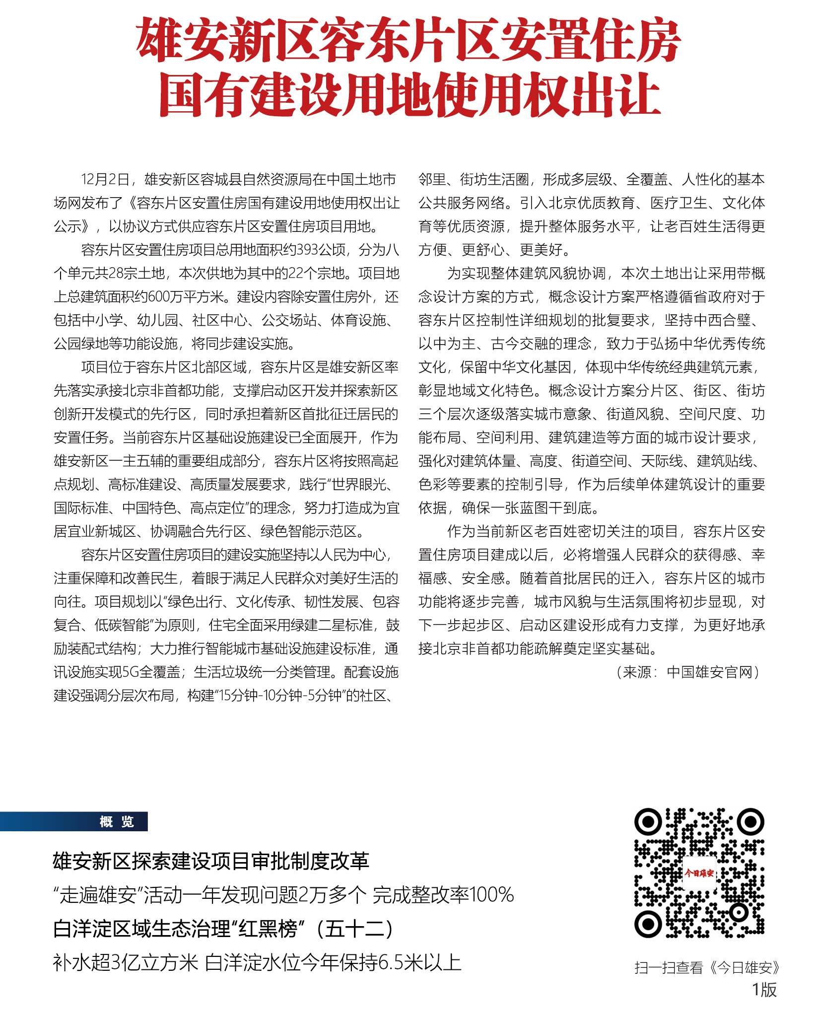 雄安新区容东片区安置住房国有建设用地使用权出让