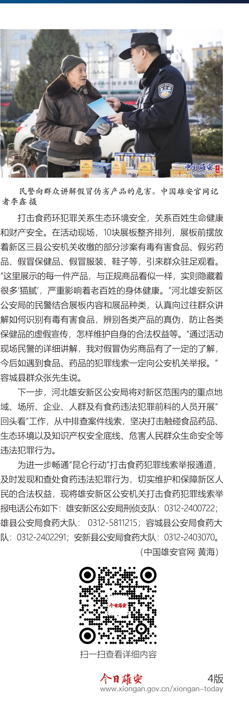 河北雄安新区公安局举办打击食药环犯罪暨整治食品安全问题联合行动成果展