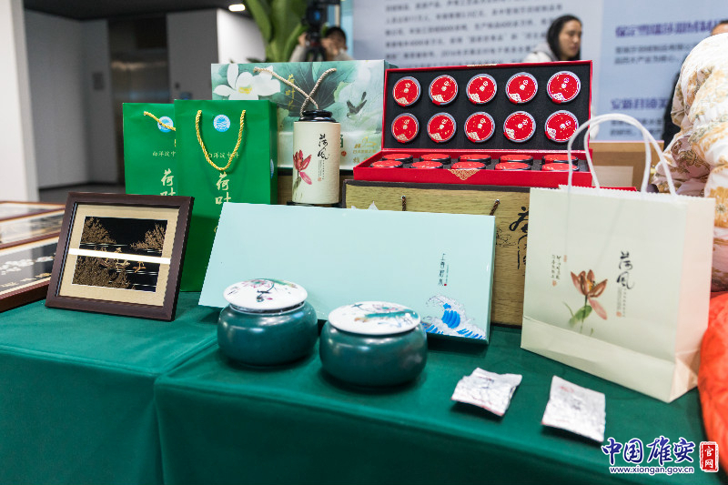 雄安新区三县电子商务发展成果展现场展出的荷叶茶。中国雄安官网陈凯昆 摄