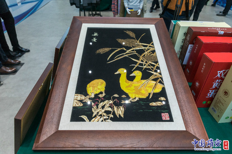 “一淀芦苇一淀金”,省级非物质文化遗产安新芦苇画亮相雄安新区三县电子商务发展成果展。中国雄安官网陈凯昆 摄