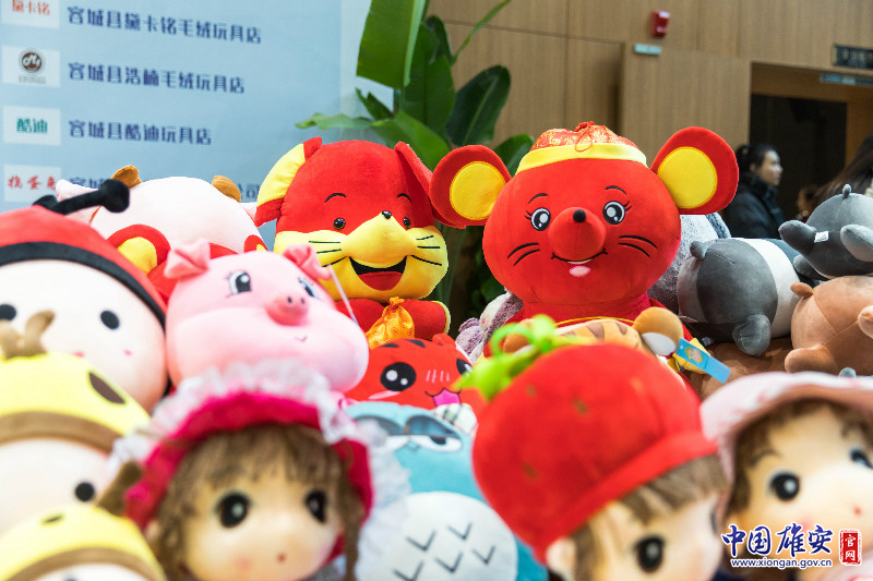 各式各样的毛绒玩具亮相雄安新区三县电子商务发展成果展。中国雄安官网陈凯昆 摄