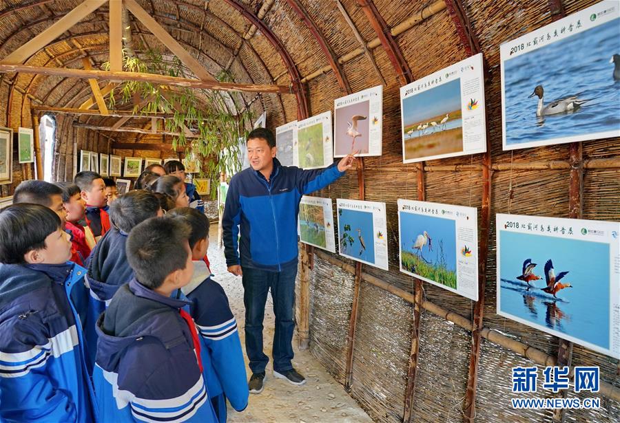 12月4日,秦皇岛市北戴河区蔡各庄小学学生在北戴河区青少年鸟类科普实践教育基地鸟类知识长廊参观。