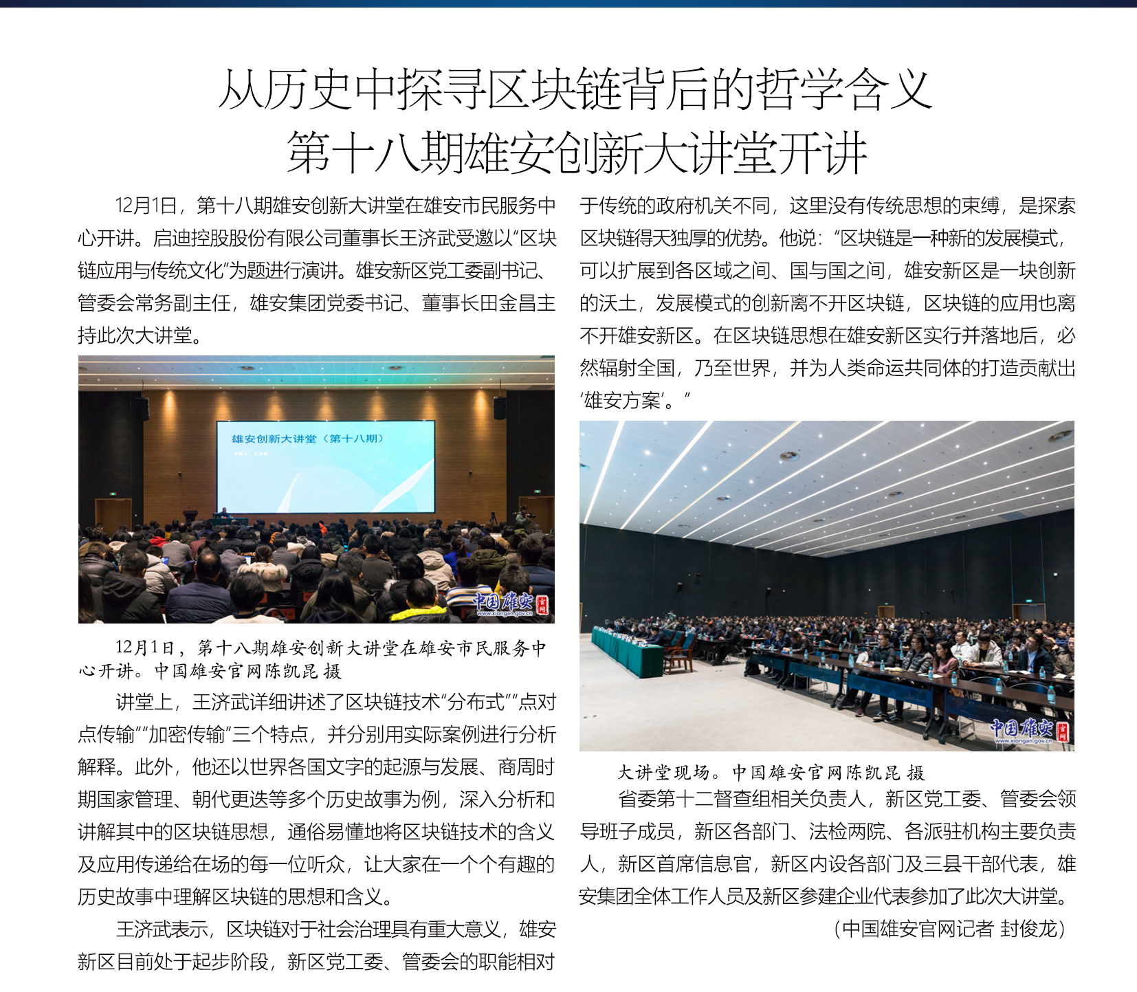 从历史中探寻区块链背后的哲学含义 第十八期雄安创新大讲堂开讲