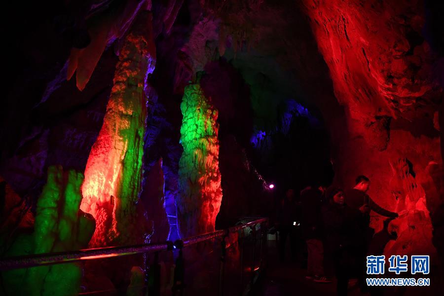 12月5日,游人在天津市蓟州溶洞内欣赏钟乳石景观。 蓟州溶洞坐落在天津市蓟州区罗庄子镇,是天津市唯一的洞穴景观。目前虽已进入冬季,但洞内冬暖夏凉。溶洞内40处钟乳石景观晶莹剔透,千姿百态。新华社记者马平 摄