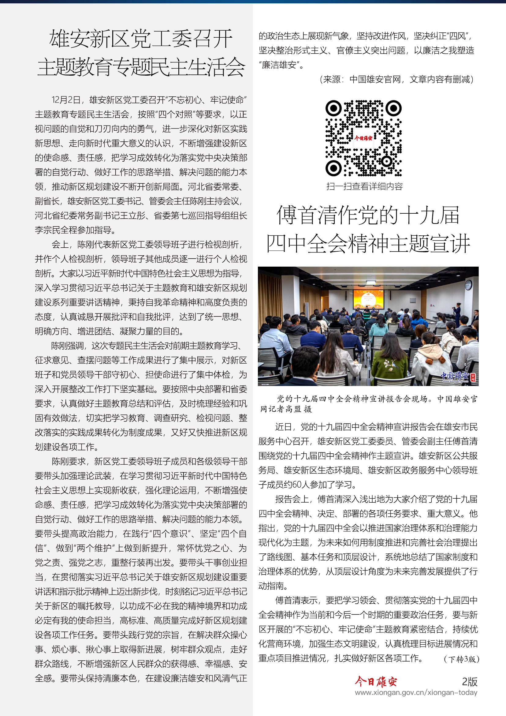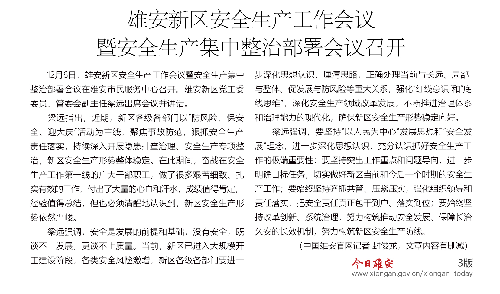 12月6日,雄安新区安全生产工作会议暨安全生产集中整治部署会议在雄安市民服务中心召开。