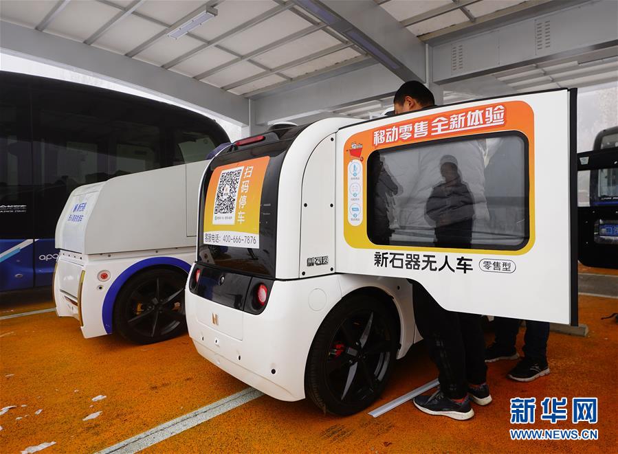 12月10日,工作人员在雄安新区维护无人售货车。新华社记者邢广利 摄