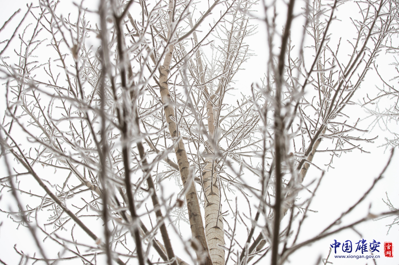 雄安市民服务中心内,满树银装素裹。中国雄安官网高盟 摄