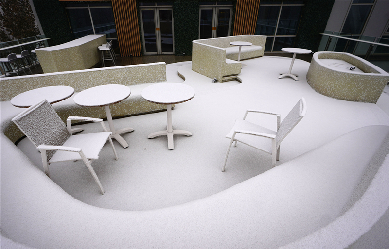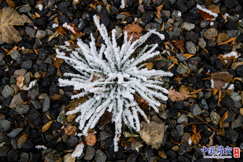 雄安市民服务中心内,草丛上布满雪花。中国雄安官网高盟 摄