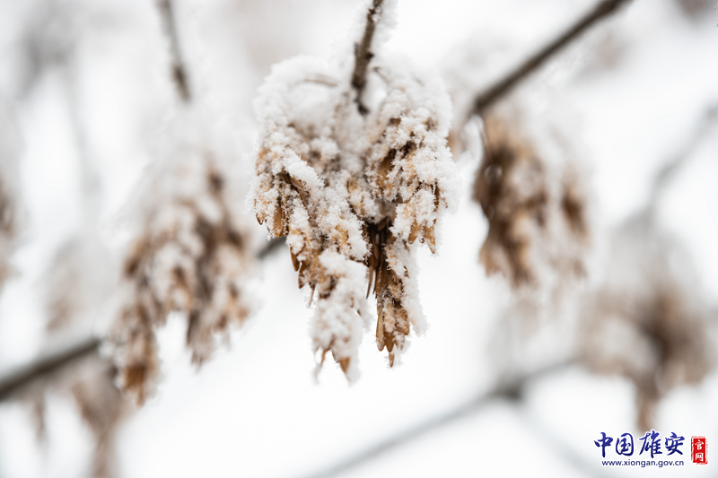 雄安新区容城县,当树叶遇上雪花,更显精致唯美。中国雄安官网高盟 摄