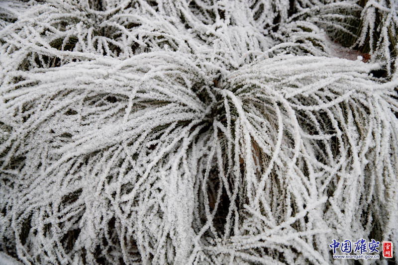雄安市民服务中心内,小草上布满雪花,像是一朵盛开的鲜花。中国雄安官网高盟 摄