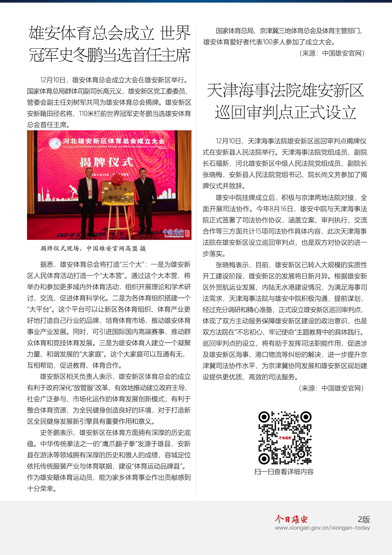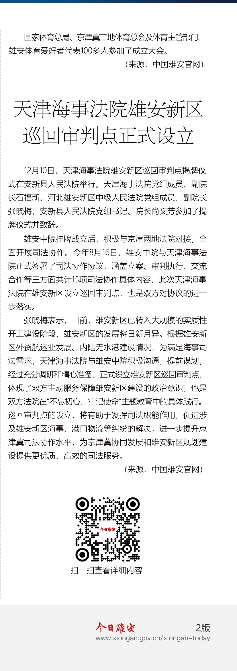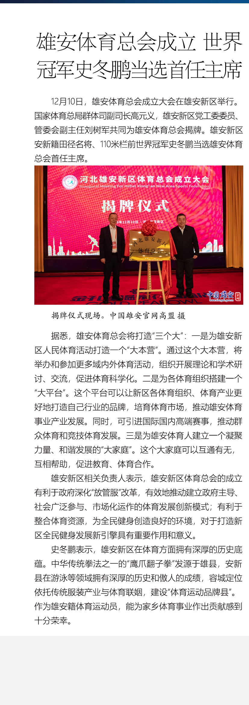 12月10日,雄安体育总会成立大会在雄安新区举行。