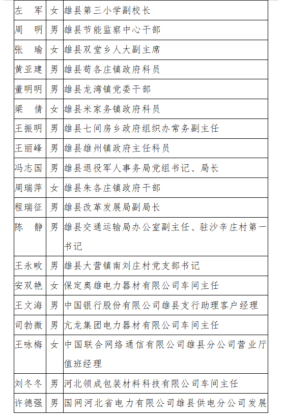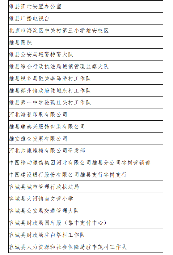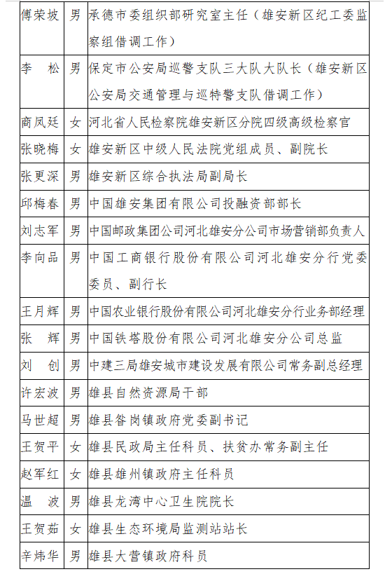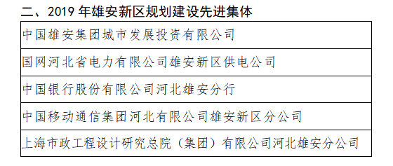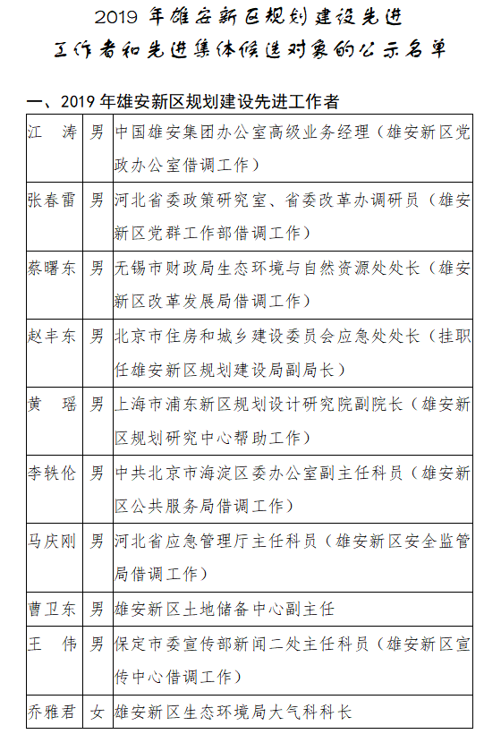 附件:2019年雄安新区规划建设先进工作者和先进集体候选对象的公示名单