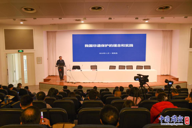 国家文化和旅游部原副部长、党组成员项兆伦作题为《我国非遗保护的理念和实践》的专题讲座。雄安新区公共服务局供图
