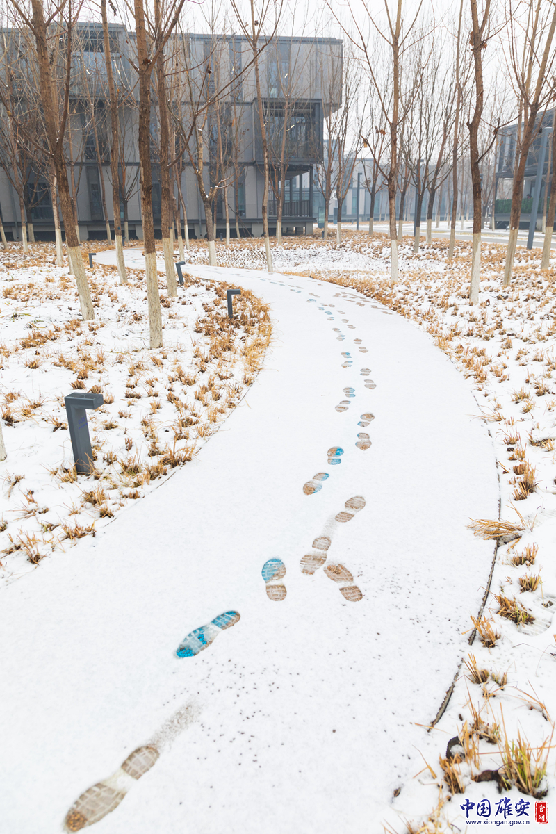 雪后的小路上布满脚印。中国雄安官网记者毛鹤然 摄