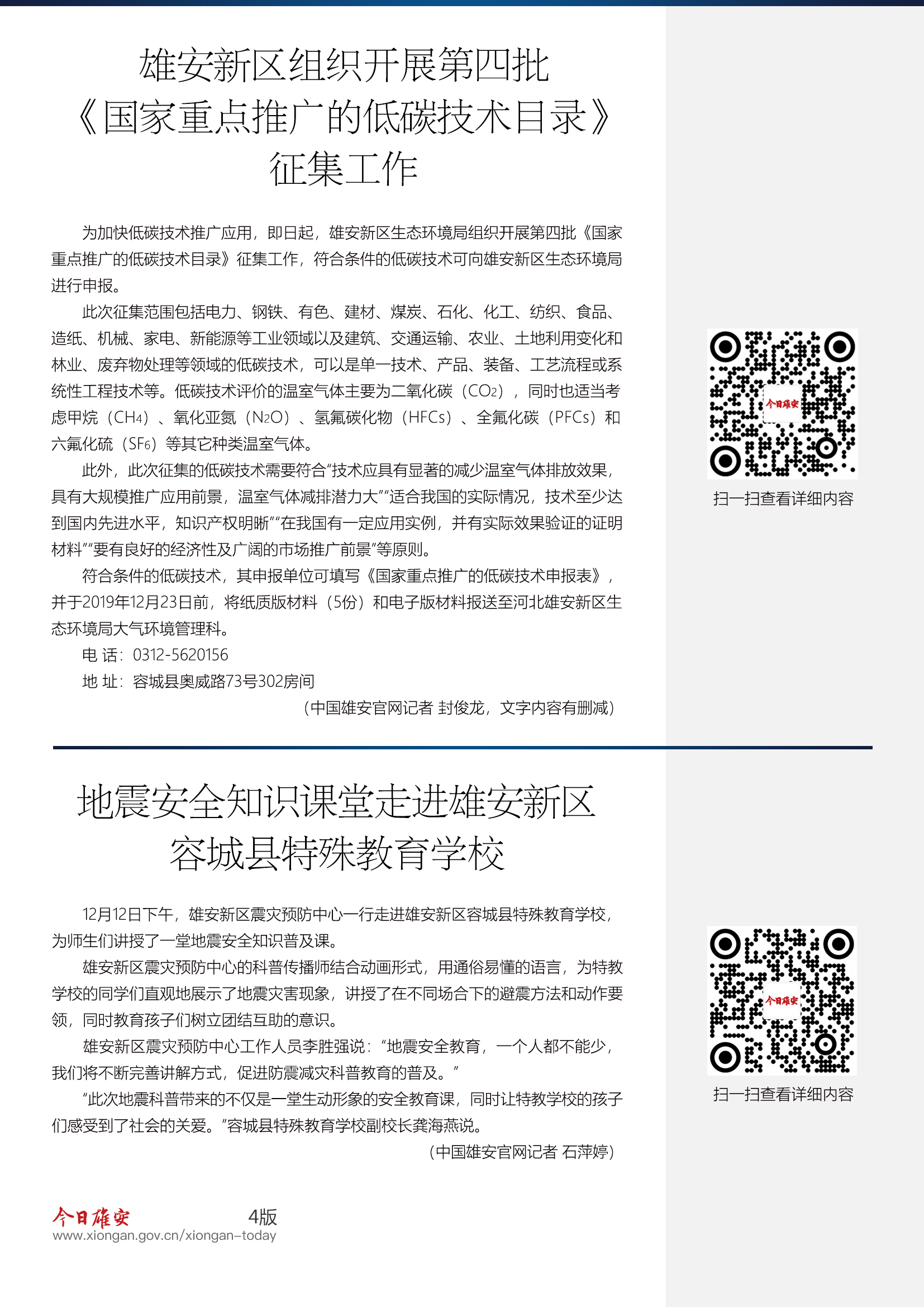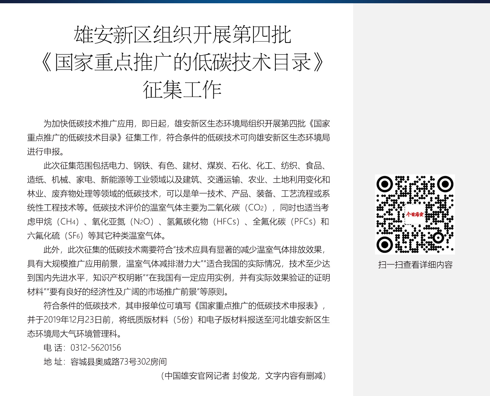雄安新区组织开展第四批《国家重点推广的低碳技术目录》征集工作