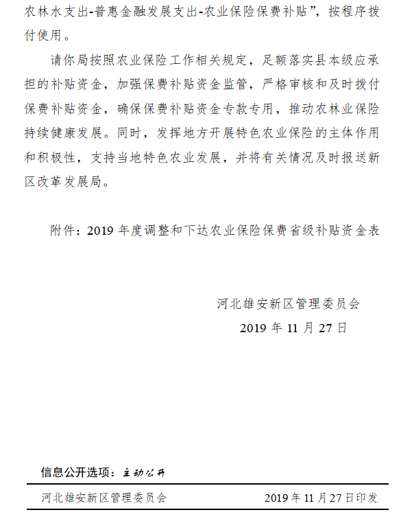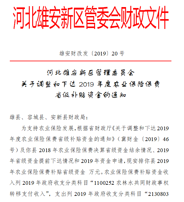 现将雄安新区调整和下达2019年度农业保险保费省级补贴资金资金分配结果予以公告,如有异议,请向以下部门提出意见。