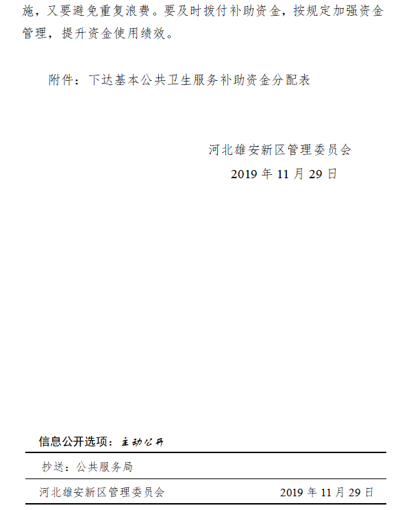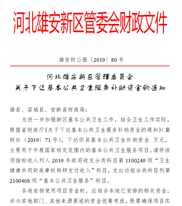 现将雄安新区下达基本公共卫生服务补助资金资金分配结果予以公告,如有异议,请向以下部门提出意见。