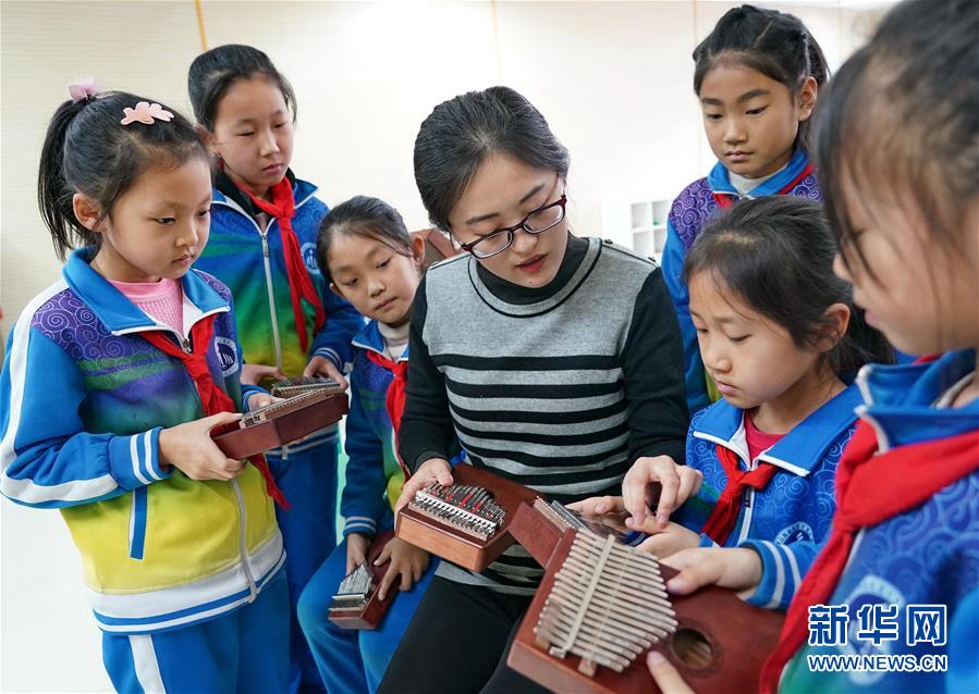 12月20日,唐山海港经济开发区第四小学的老师在放学后指导音乐社团的孩子们练习拇指琴。今年以来,河北唐山海港经济开发区在主城区各小学推行“校内课后服务”制度,破解孩子放学早、无人接、无人看护的难题,通过丰富多彩的活动让孩子们度过快乐的课后时光。新华社记者杨世尧 摄