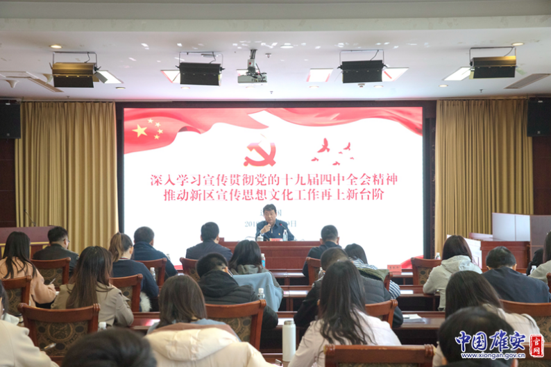 2.近日,雄安新区宣传中心召开以“深入学习宣传贯彻党的十九届四中全会精神,推动新区宣传思想文化工作再上新台阶”为主题的宣讲会,河北省委宣传部部务会成员、副巡视员,雄安新区宣传中心主任边建国作宣讲。
