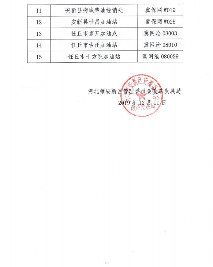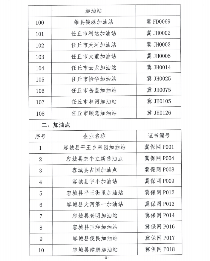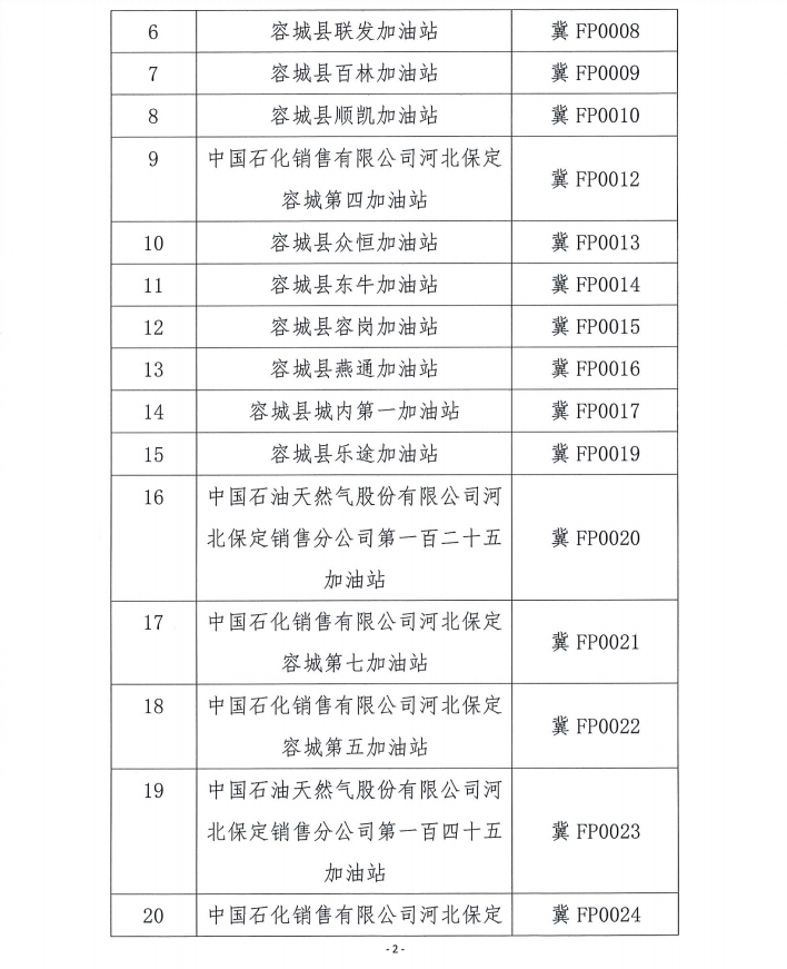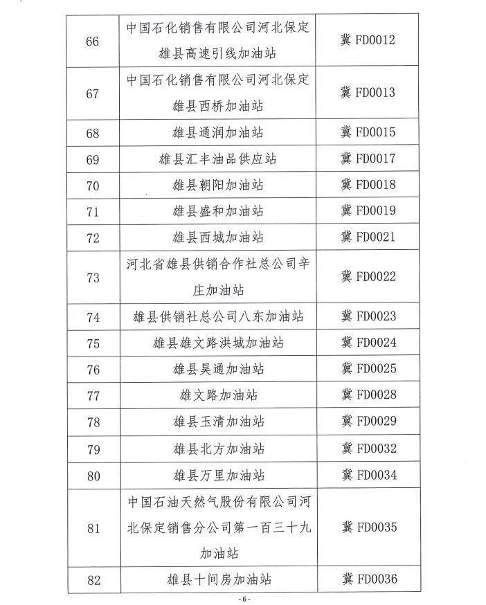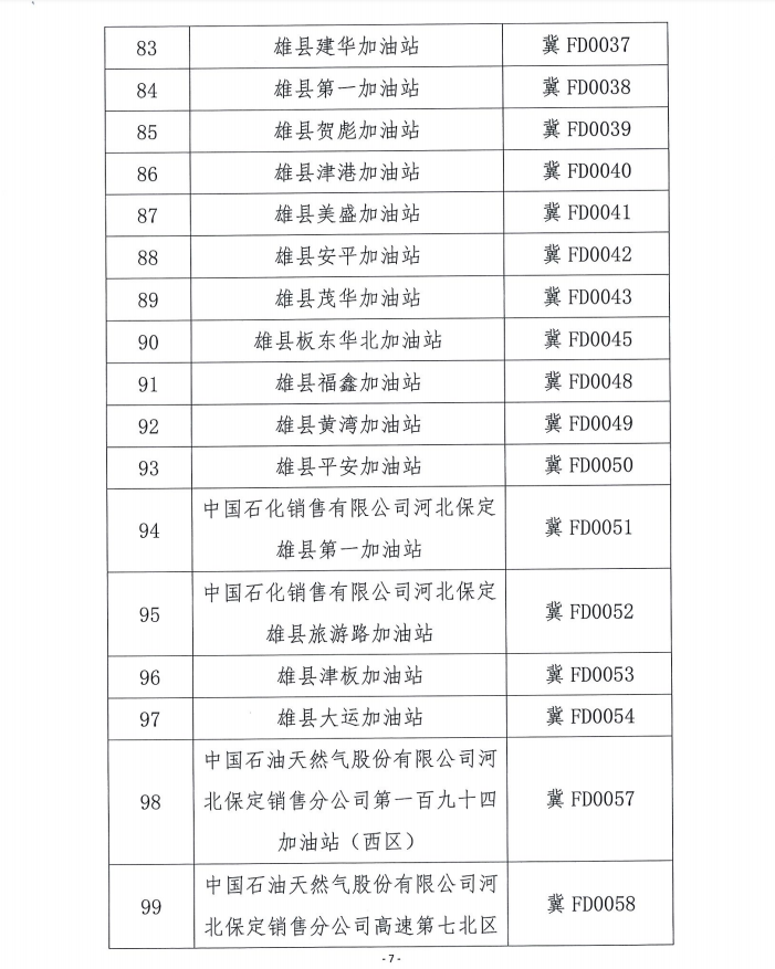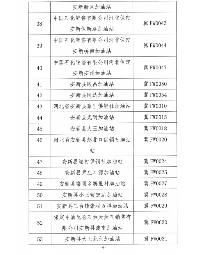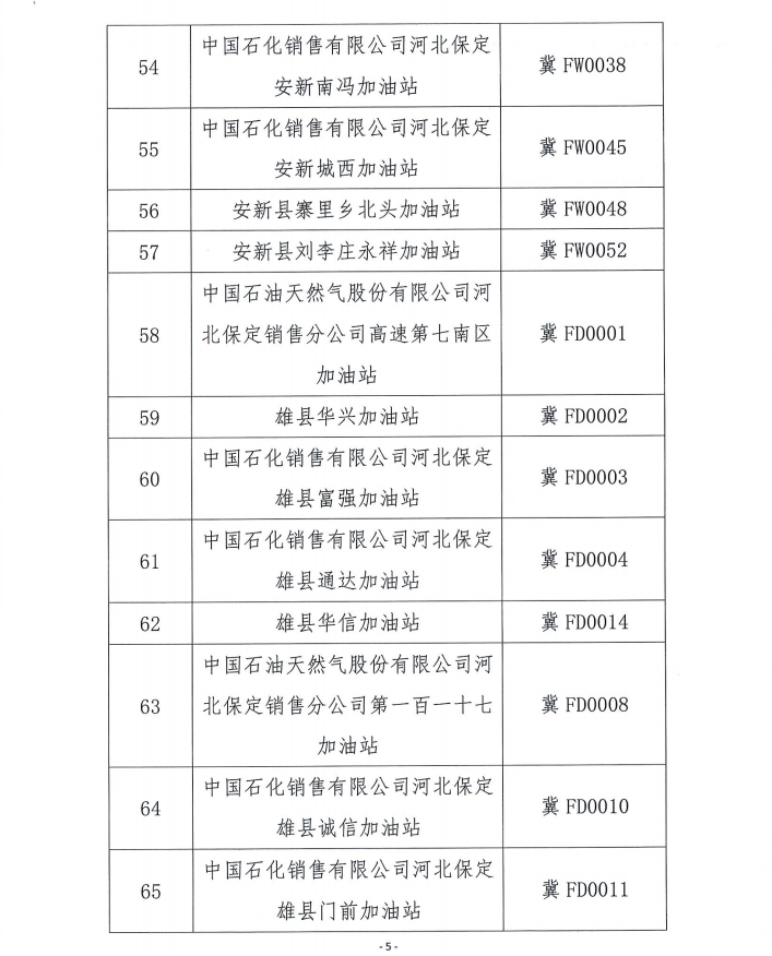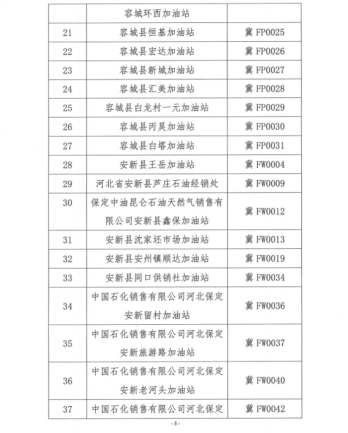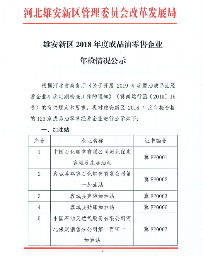 雄安新区2018年度成品油零售企业年检情况公示