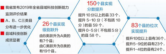 11.12月23日,河北省发布2019年县域科技创新能力监测评价结果,13个县科技创新能力被确定为A类。