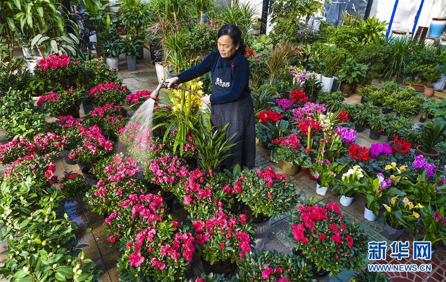 12月26日,在河北省故城县一家绿植市场,工作人员给绿植浇水。新年临近,河北省故城县绿植进入旺销阶段,不少市民前往绿植市场,选购室内观赏花卉、绿色植物等,为节日增添喜庆氛围。目前,该县有大小绿植市场30余家,每年可为周边群众供应绿植30万株,并远销北京、天津、石家庄等市场。新华社记者李晓果 摄