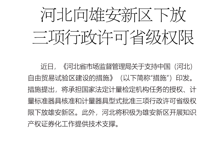 河北向雄安新区下放三项行政许可省级权限
