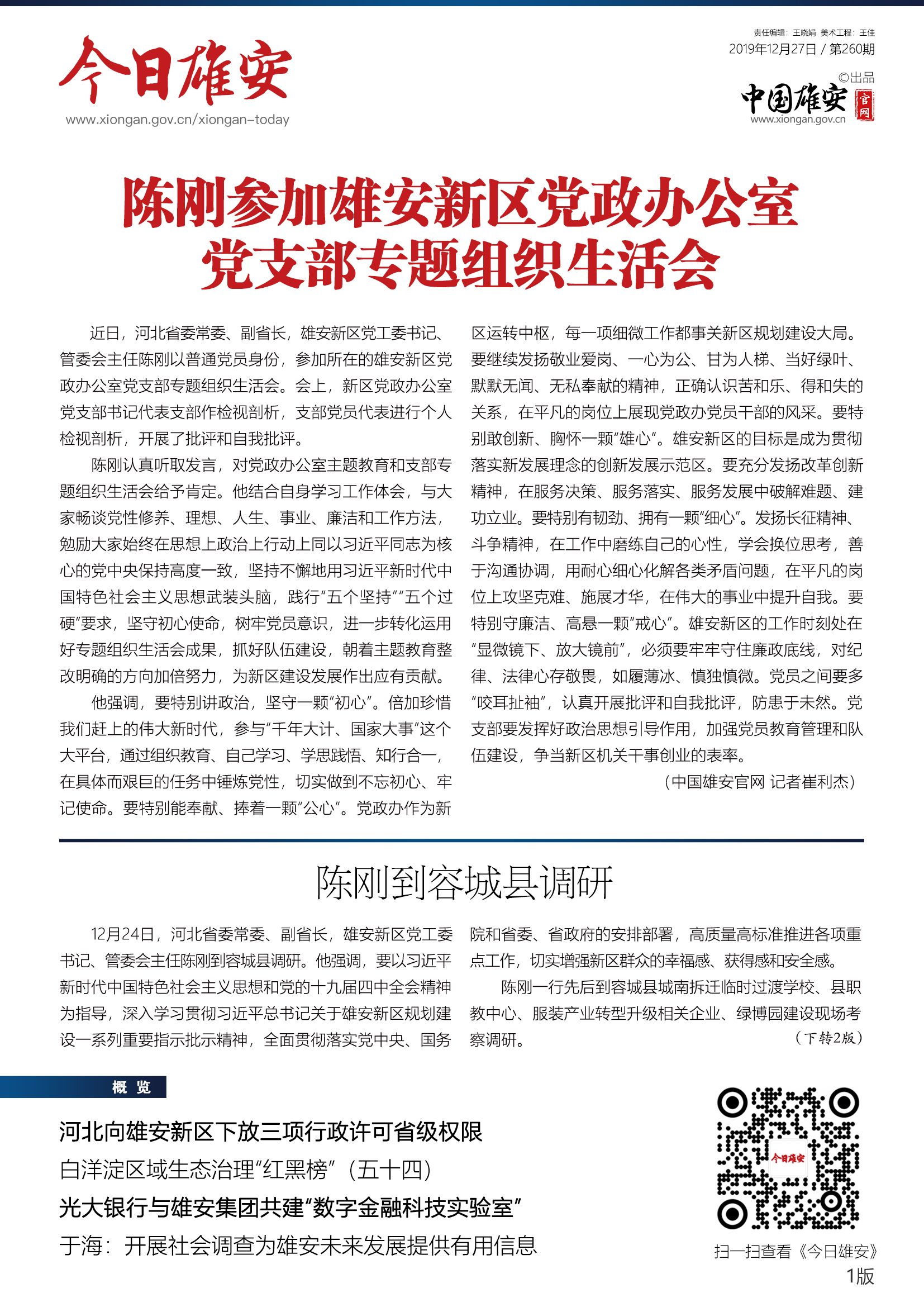 《今日雄安》 2019年12月27日 第260期
