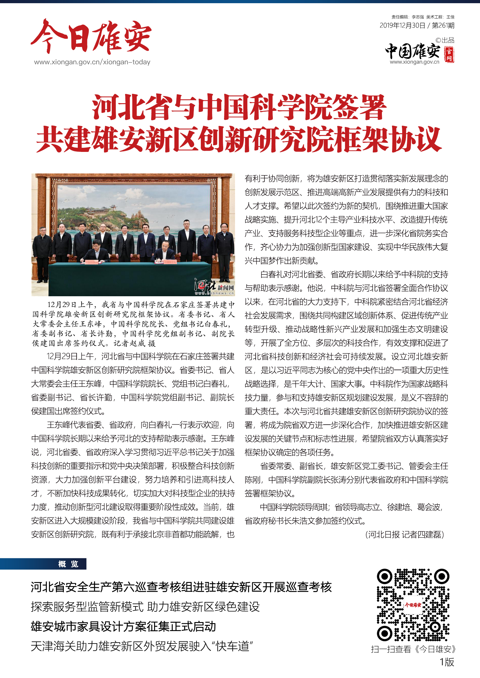 《今日雄安》 2019年12月30日 第261期