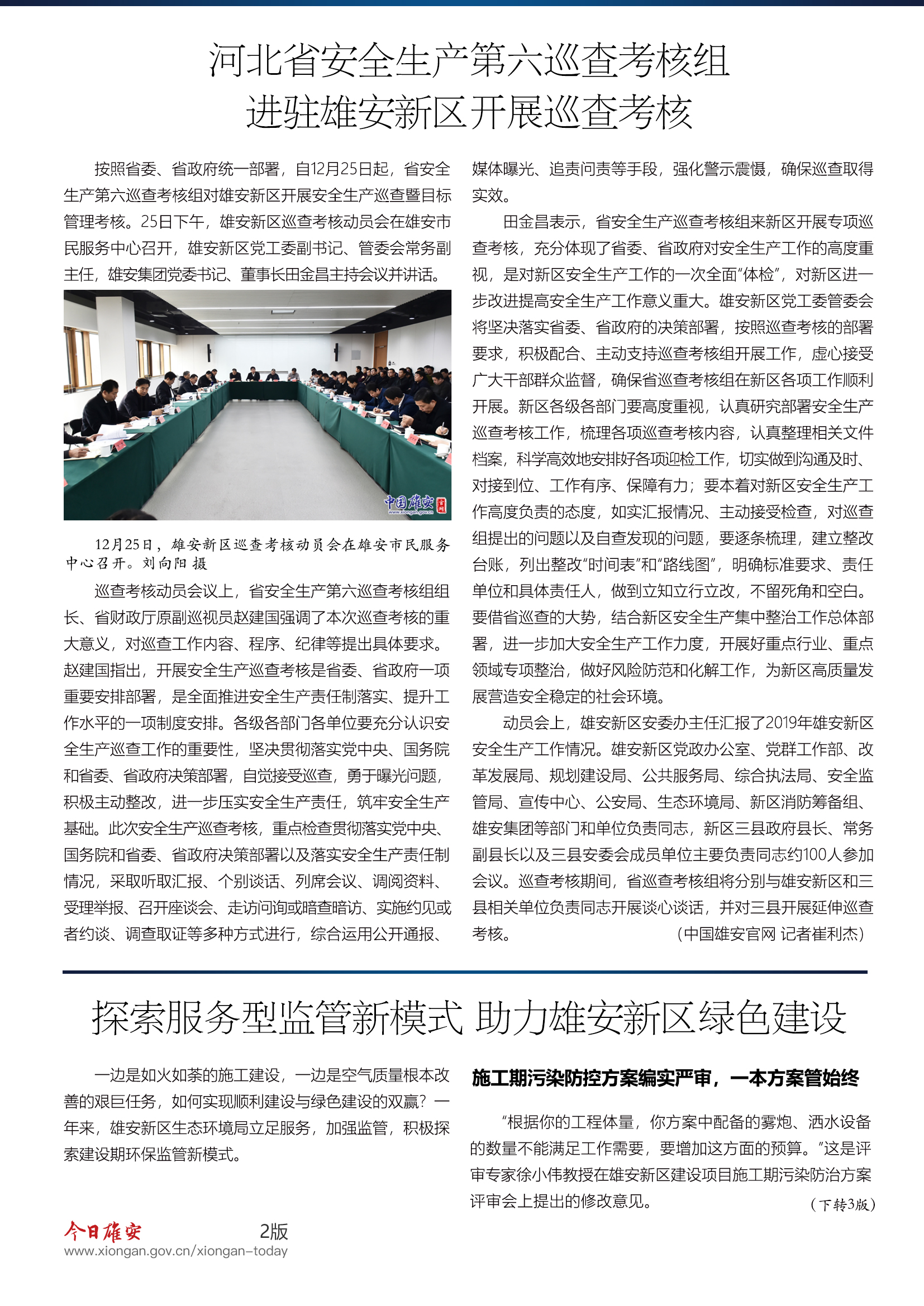 省安全生产第六巡查考核组进驻雄安新区开展巡查考核