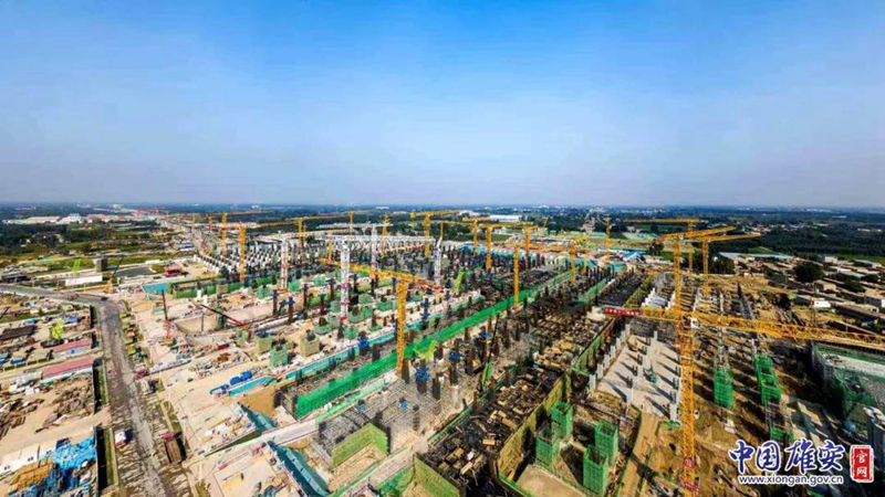 京雄城际铁路雄安站房施工现场。中国雄安官网记者马梦迪 摄(资料图)