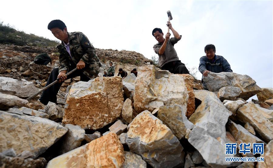 2019年9月17日,后池村村民在修路途中。新华社记者 王晓 摄